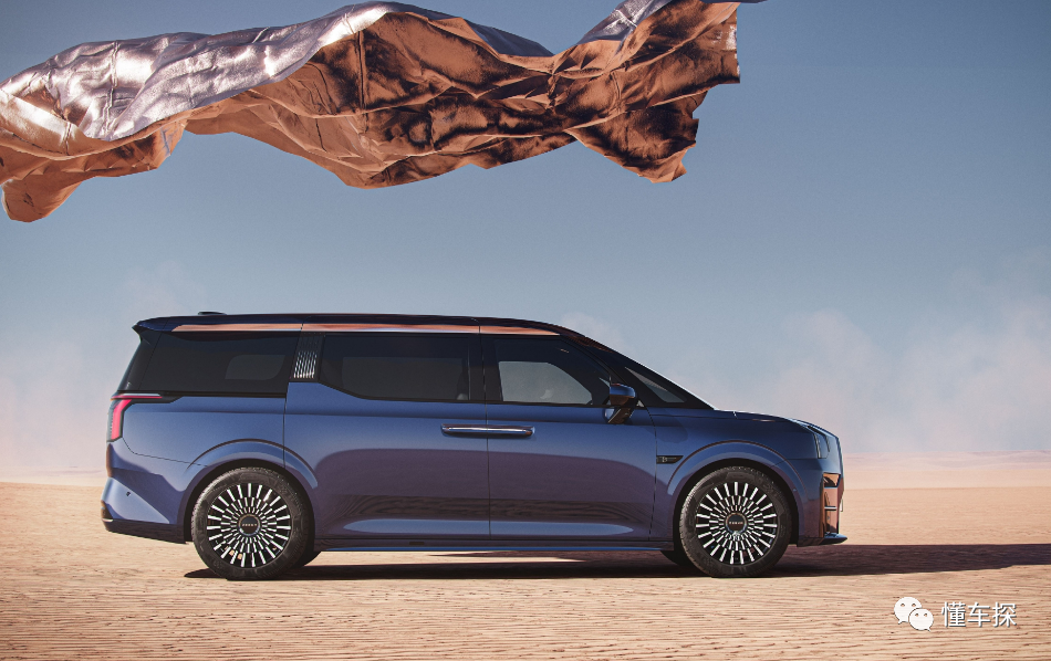 车身侧面,极氪009突出一个简洁实用,车辆并没有使用隐藏式门把手,反而采用更加实用的传统门把手,而对开门设计能更好的帮助乘客上下车。