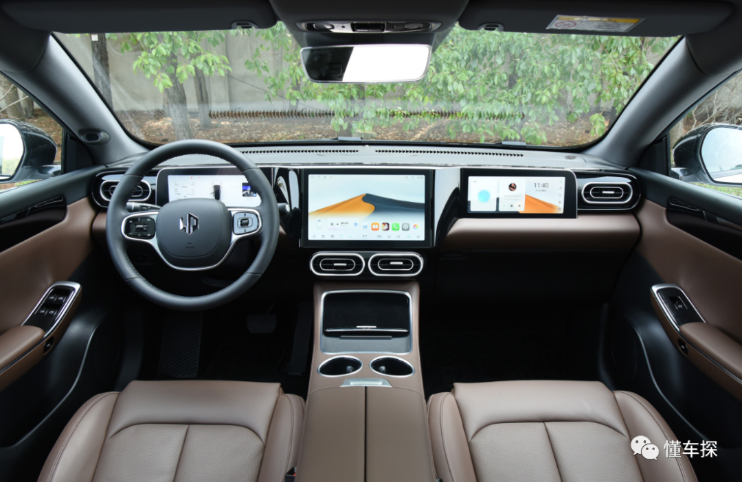 零跑C01车内有着12.8英寸的中控屏,与其匹配的是右侧10.25英寸的副驾驶娱乐屏,内置Leapmotor