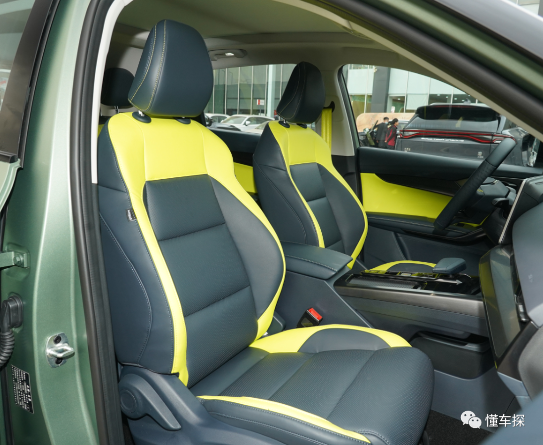 β内饰部分的配色也非常的华丽,它的颜色名称叫做午夜闪电,运用的是绿色和明黄色的色彩搭配,尤其是这几抹明艳的黄色,真的就让人能够联想到黑夜中的闪电,也给人一种很强的视觉冲击。