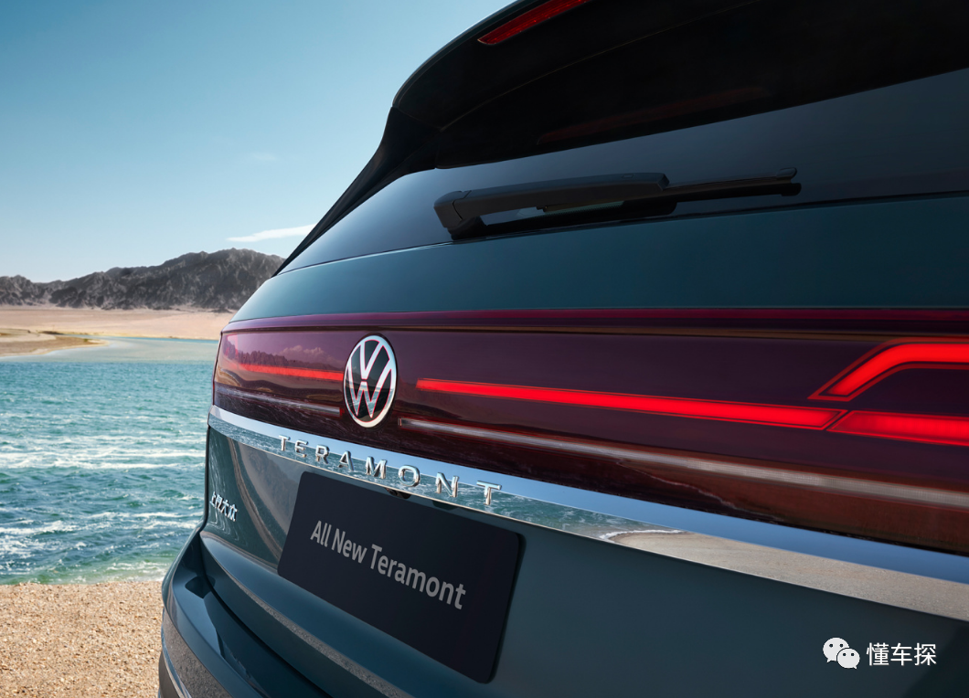 车尾部分,大众途昂有着一个规格较大的扰流板,而扰流板中央是车辆的高位刹车灯,再下方则是带有雨量感应功能的后雨刷和贯穿式的尾灯组,尾灯组下方拥有一根同样贯穿式设计的镀铬饰条,为底部两边共两出的假排气能够提升一定的运动属性。