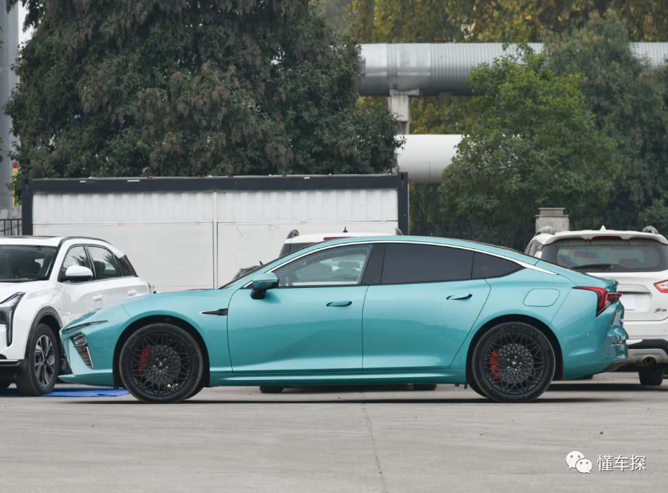 而且,因为哪吒S增程版采用的是溜背的设计,所以运用了弧线之后也显得车辆侧面的造型看起来更加流畅,更具有运动感。