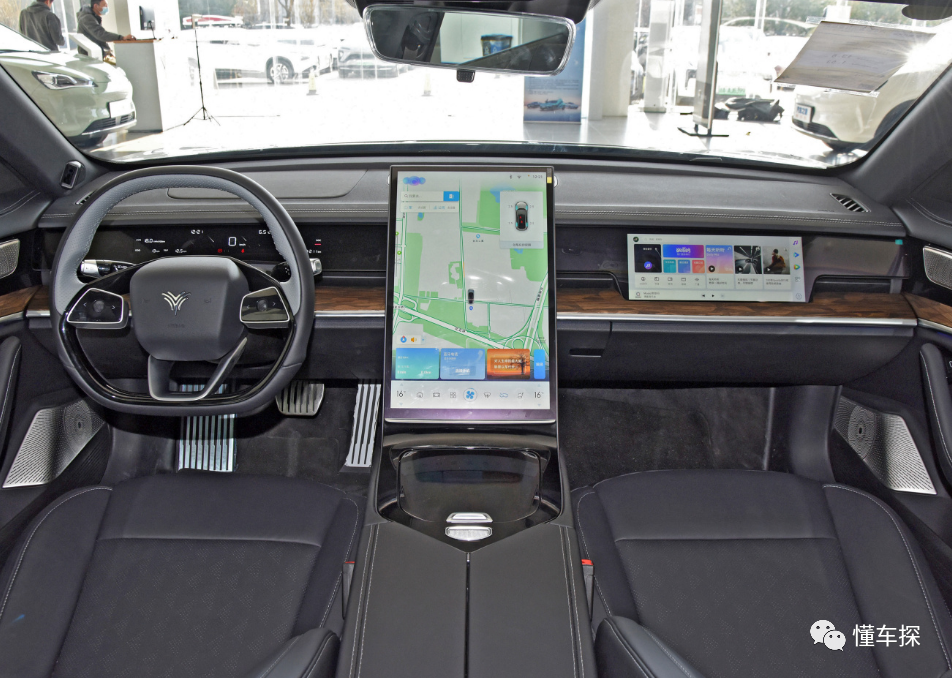 哪吒S增程版的内饰部分能够让人感受到满满的科技感。
