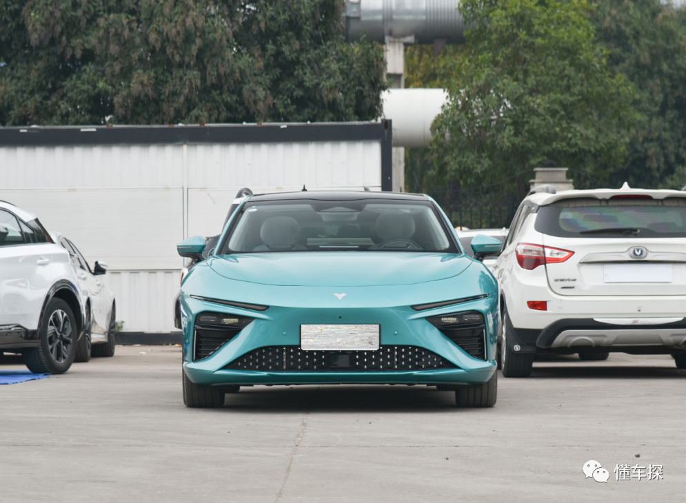哪吒S增程版的车头部分给人一种很低矮的感觉,让人觉得它整个车辆都趴在地上,所以也显得车头部分看起来很宽、很有气场。