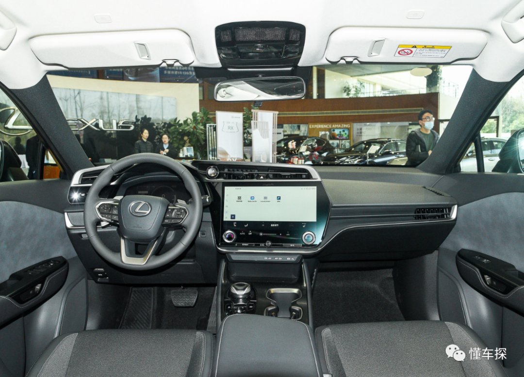 雷克萨斯RZ使用的是姜熊概念座舱理念,拥有全液晶仪表盘,HUD抬头显示系统以及三幅式多功能方向盘。