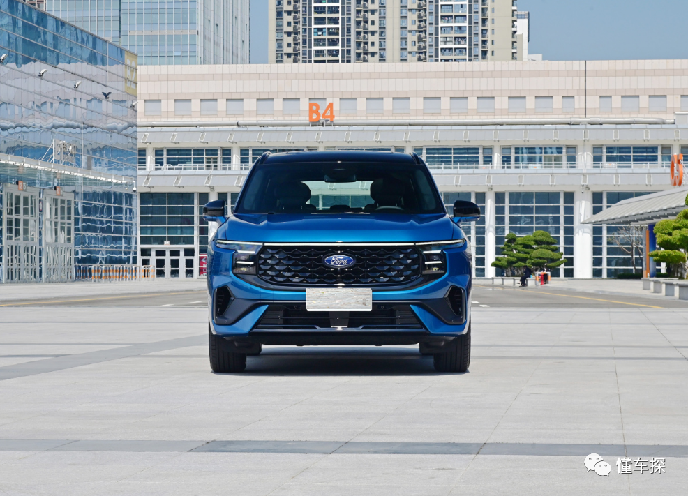 中网格栅的中上部则是福特的椭圆形车标,特别的蓝色车标不仅表明了车辆的身份,还将消费者们的目光都吸引在了车头的装饰上,从而能让它受到更多的关注。