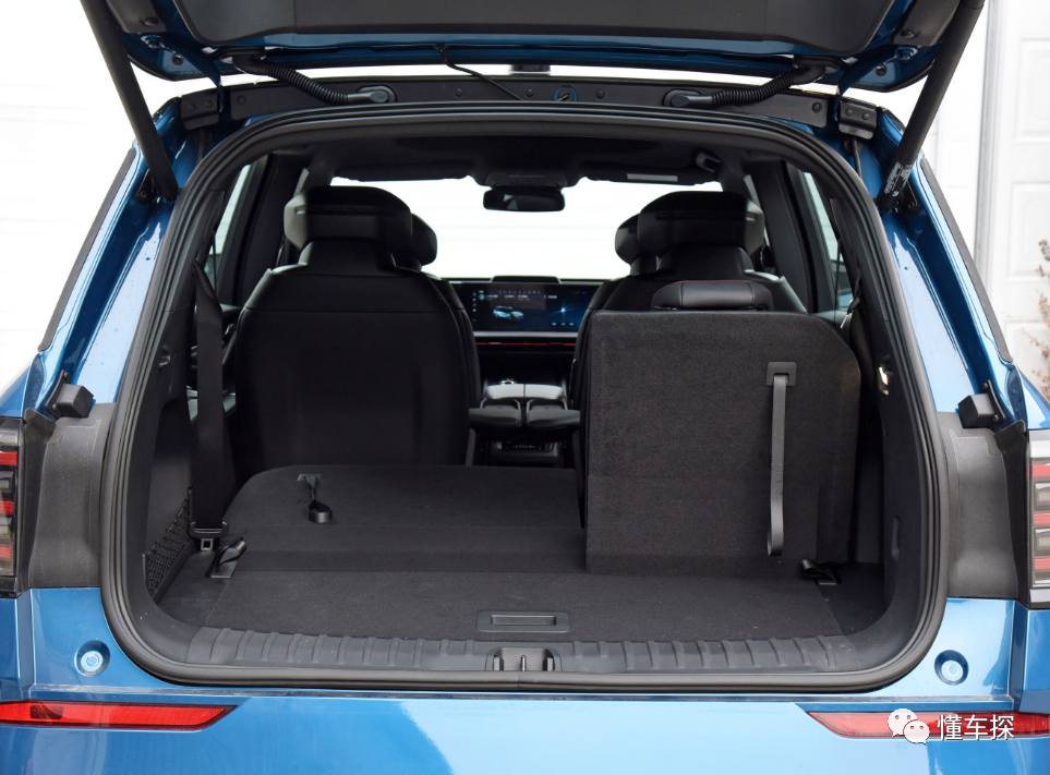 另外,车辆的后备厢容积也不小,即使是三排座椅全部坐满乘客,后备厢空间仍然可以放下两个小型的行李箱,如果是将后排的座椅放倒的话,它的容积就可以进一步提升,给车主带来更大的方便。