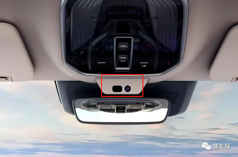 在内反光镜上还有一个车内摄像头,可以随时监测这里的情况。