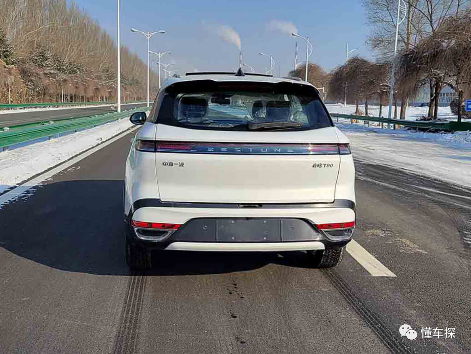 车尾部分,奔腾T90拥有一条贯穿式灯带,而灯带上方有着一汽奔腾的英文LOGO,不过暂时不知道这些英文LOGO有没有发光功能,如果能够发光,车尾的辨识度将会更高。