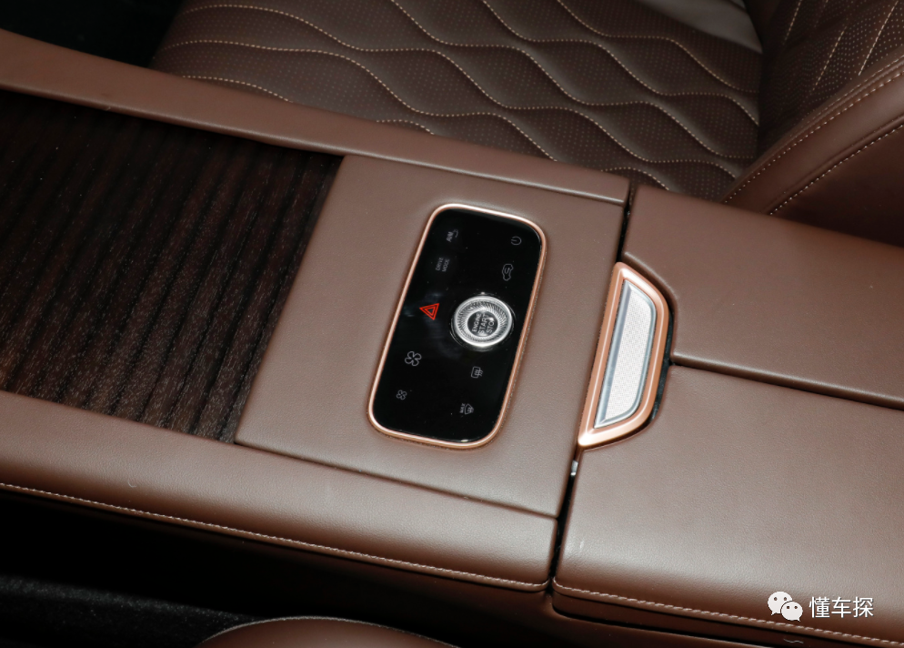 后半部分布局了一块控制面板,包含紧急制动按钮、内外循环、空调调节按键等。