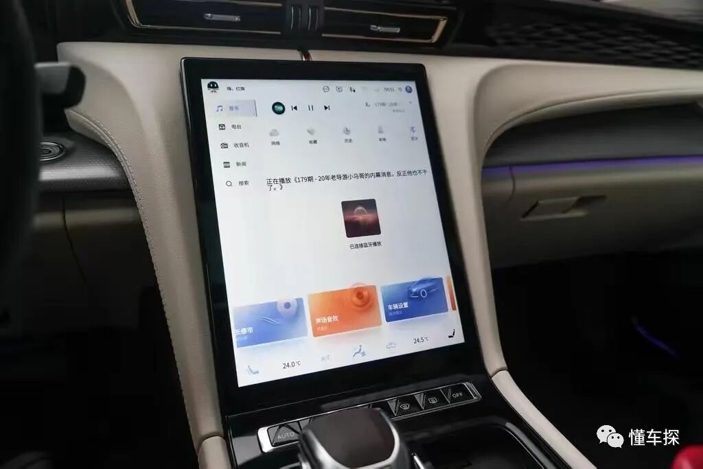 沿用对称式的中控台布局,大量软质材料包裹其中,再加上竖直设计的12.6英寸中控显示屏,使其营造出较为浓郁的豪华前卫氛围。