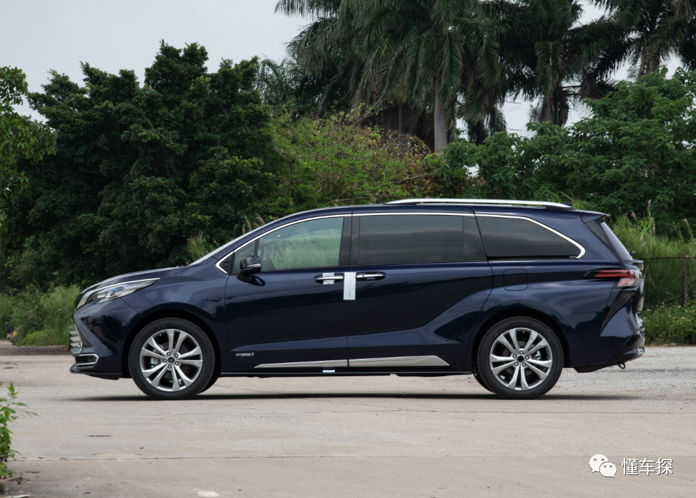 广汽丰田赛那的侧面同样和大多数的MPV不同,不仅没有采用MPV中比较普遍的悬浮式车顶,而且车身的腰线、侧裙线有明显的起伏,视觉效果和一般MPV截然不同,反倒更接近SUV。