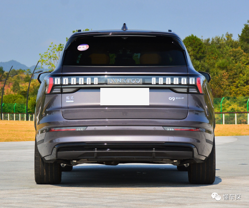 领克09 EM-P的车辆尾部造型看起来是很宽的,这可能也是因为它采用了贯穿式尾灯。
