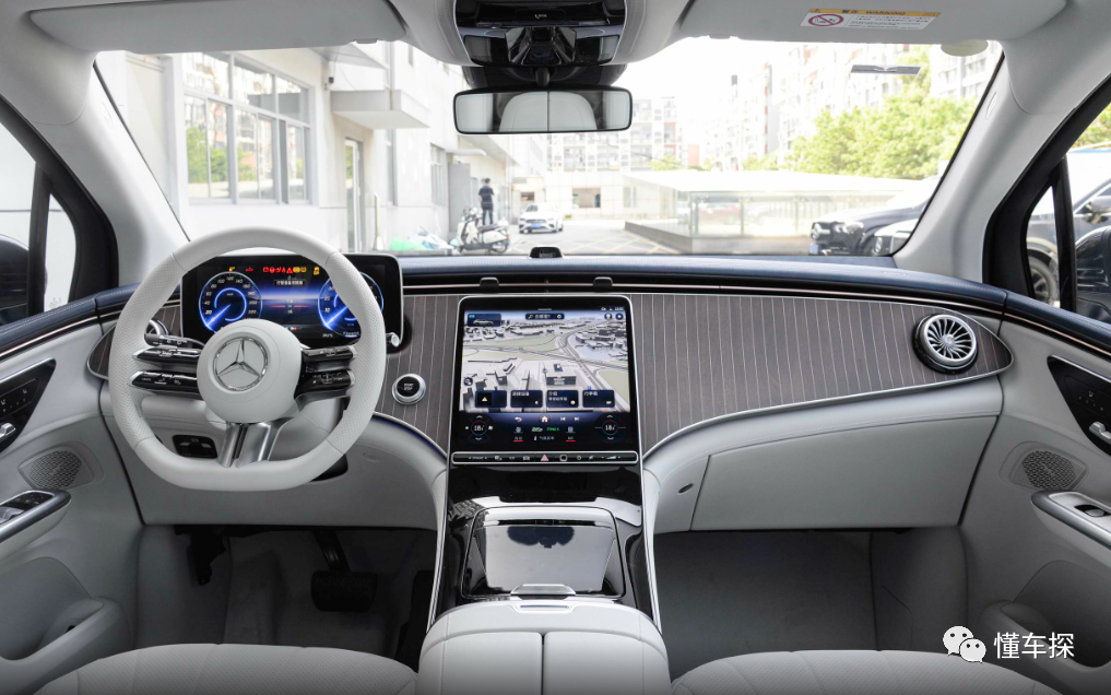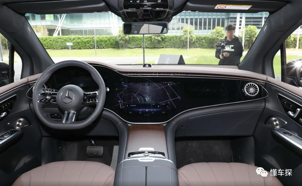 SUV顶配车型的内饰设计和之前的奔驰EQS/EQE等车型相差无几,但是低中配车型没有配备副驾驶娱乐屏幕,其依旧是传统的双屏布局,三幅式的方向盘加上三联屏,在科技质感方面可以说是直接拉满,而且在配置方面,该车也是有所保障的,其不仅拥有64色的氛围灯和平视显示系统,同时还拥有实景穿越导航和反向主动转向系统,再加上座椅脉冲侧撞保护和智能能量回收功能的存在,可以大大的降低用户的驾驶压力,让用户随时随地都能感受新时代车型的魅力。