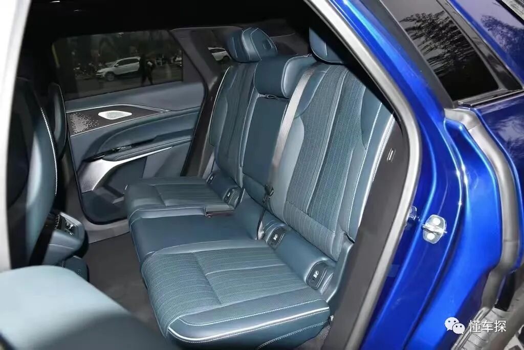 类似环抱样式的中控台布局,看起来层次感分明,大面积软质材料包覆其中、夜空黛蓝配色的点缀下,豪华质感得以直观体现。