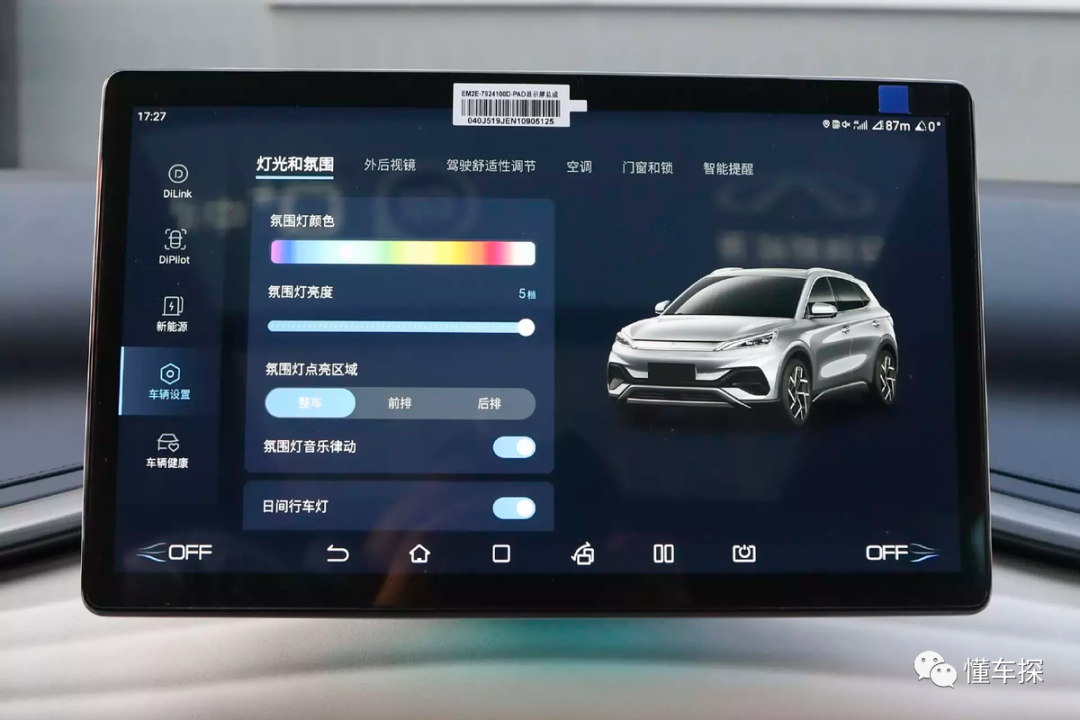 虽说对于国产品牌这个价位的车型也不需要担心配置,但是像元PLUS这样能够尽可能配齐的车型也不多见,比如前排手机无线充电、主驾驶座椅电动调节、车载4G网络、防眩目内后视镜、外后视镜锁车自动折叠、热泵空调以及后座出风口等实用性或舒适性功能都是标配,像实拍这款高配还有L2级别驾驶辅助系统、可开启全景天窗、8喇叭音响、多色氛围灯等功能,对于驾乘品质更有保证。