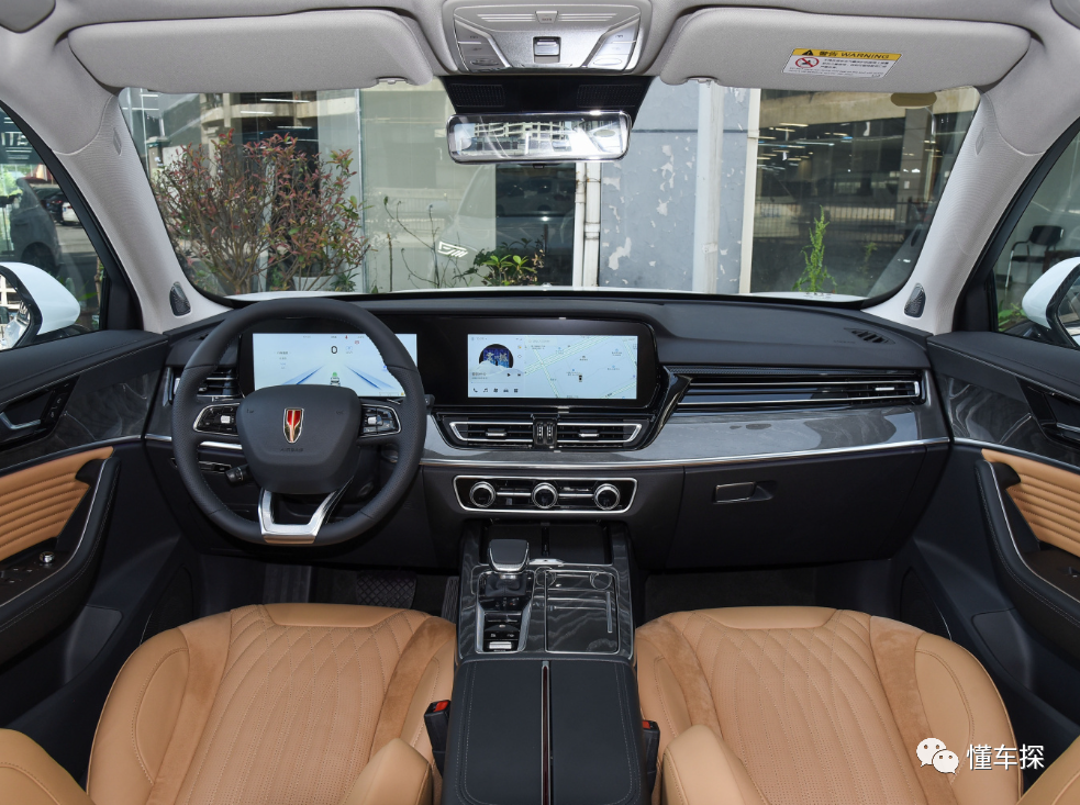 内饰方面,新红旗HS5的座舱有些类似游艇,整个中控台呈现出和游艇类似的布局,整体线条很简约,和两侧门板交汇的地方则略带弧面处理,形成环抱结构。