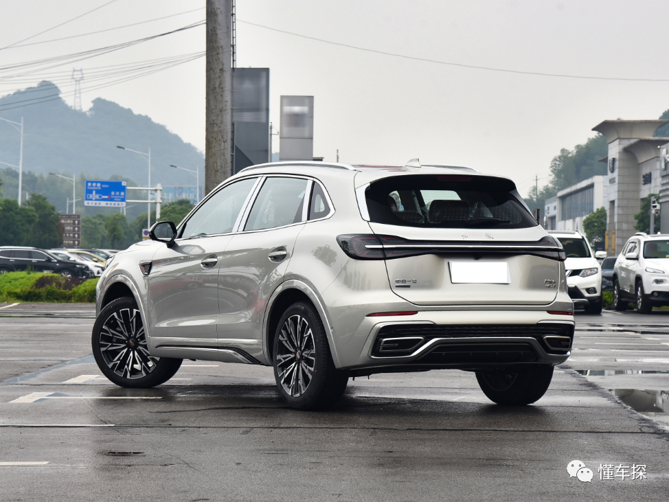 尾部的层次感也比较丰富,除了有贯穿式的灯带之外,还有大量的横向线条,后包围处也加入了黑色网格状结构和银色镀铬,整车造型很年轻化。