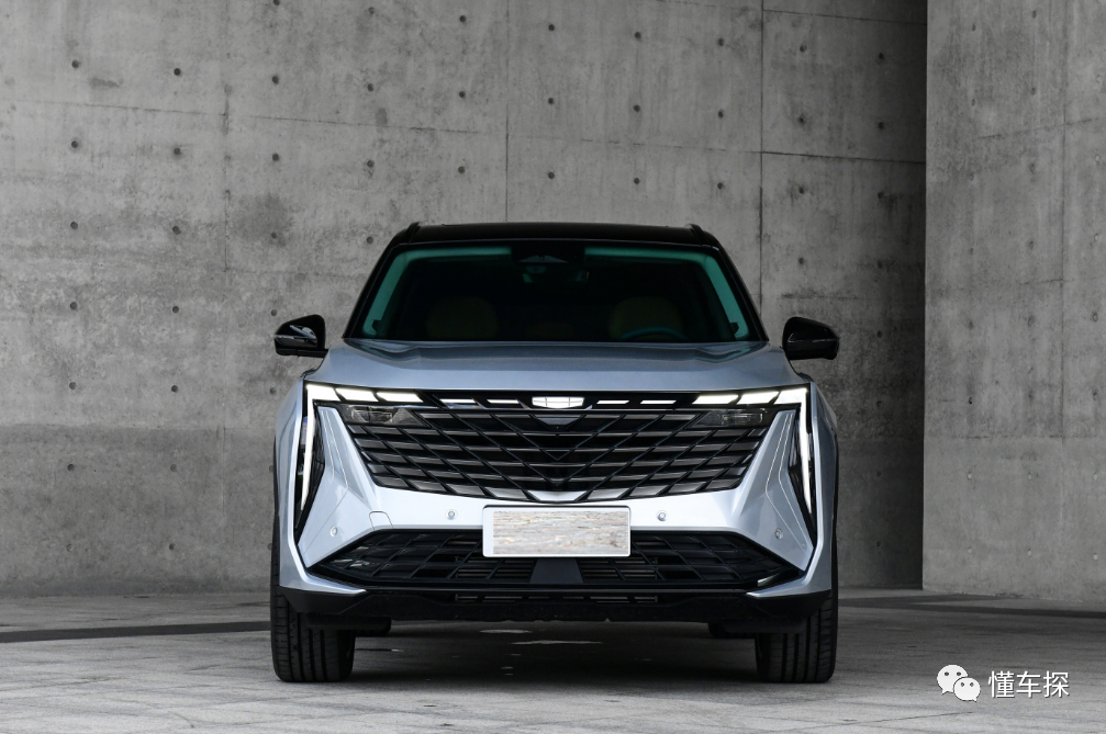 车辆的进气格栅巨大到几乎占据整个车头,并采用了光波涟漪的设计语言,贯穿式的灯组起到了拉伸视觉宽度的效果,左右两边还有类似于凯迪拉克的泪眼式造型。