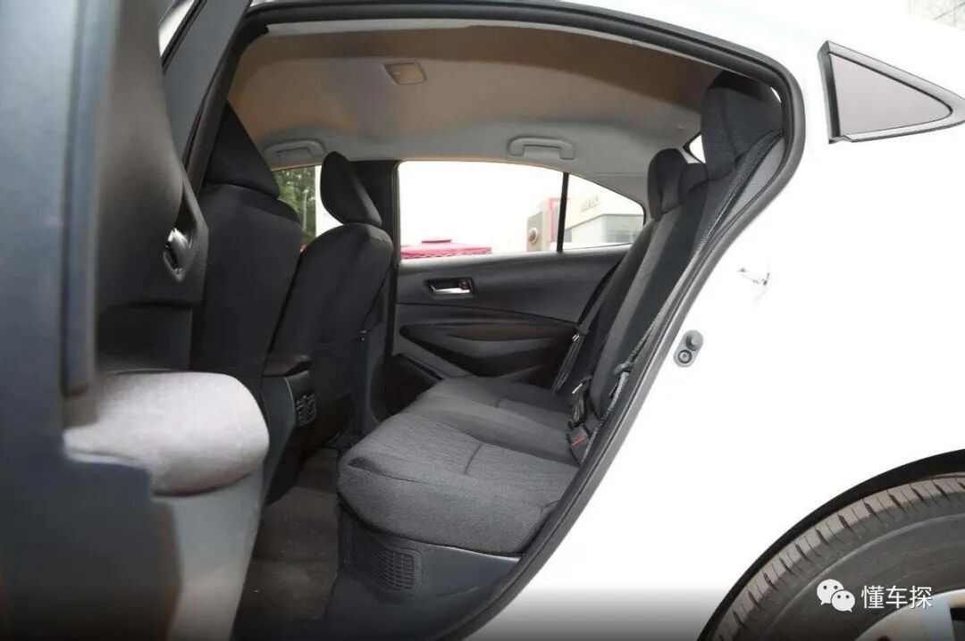 定位紧凑级轿车的全新卡罗拉有着4635*1780*1455(1435)mm的车身长宽高,其轴距为2700mm,座椅采用了织物或者仿皮面料包覆的设计,拥有更加厚实的内部填充,柔软的乘坐感受符合日系大沙发的定位,后排虽然地台中间略有凸起,但并没有影响到中间乘客的舒适度,同时充裕的纵向距离也能保证足够的腿部空间。