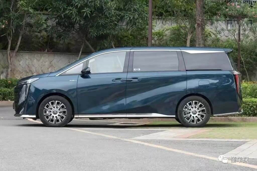 转身来到广汽传祺E9的侧面,造型设计和M8宗师版基本保持一致,沿用大量平直的线条,勾勒出方正硬朗的车身姿态,另外贯穿侧裙位置的镀铬饰条,也起到了很好的点睛效果,进而提升了侧面的高级精致感。