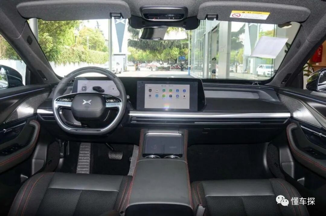 同样定位中型车的小鹏P7则有着4888*1896*1450mm的车身尺寸,轴距为2998mm,为了迎合外观整体呈现出的运动气质,小鹏P7的座椅采用了一体式的布局,同时加入了红色的缝线处理,偏向软硬适中的填充虽然没有汉DM-i那般舒适,但能提供充足的支撑性,后排能提供充足的腿部空间,虽然地台中间略有凸起,但并不会影响中央乘客的舒适度。
