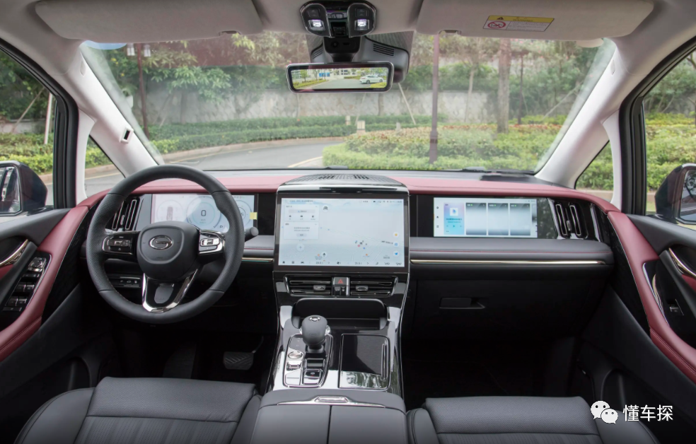 来到车内之后,传祺E9的内饰M8宗师版有些相似,不过相比之下传祺E9的科技氛围有所增加,例如副驾驶新增的娱乐屏。