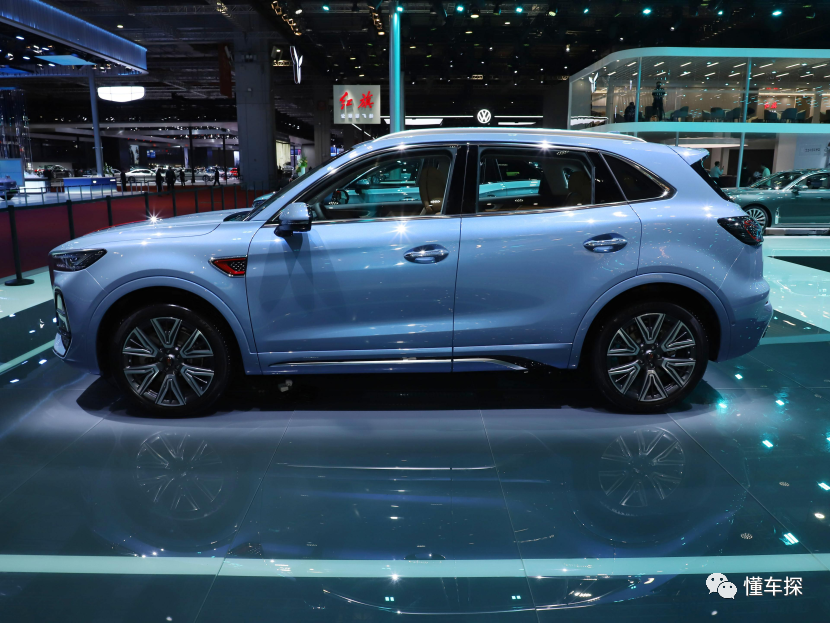 侧面依旧维持原来的轮廓,车顶略带一点弧度,而且配备有鲨鱼鳍以及行李架,整体力量感营造的比较出色;腰线采用了贯穿式设计,点缀出了车身侧面的层次感;轮毂采用了多幅式造型,质感表现比较出色。