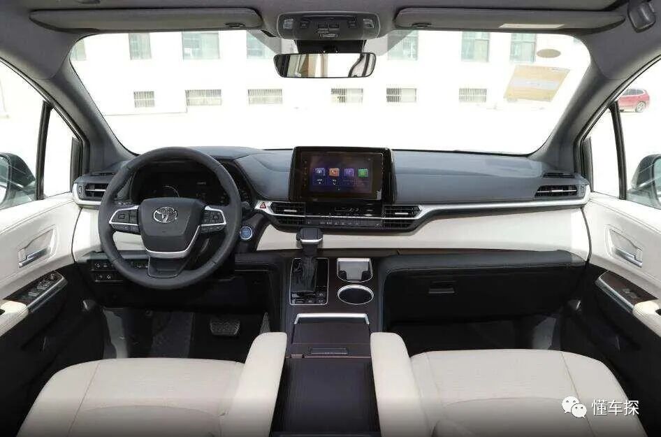 除了空间的表现外,赛那在车内也打造了更为温馨的内饰氛围,让全家出行时拥有更放松的心情,中控台采用了叠层布局的思路,台面采用了深浅搭配的配色方案,同时台面边角与车门板处形成略带环抱式的氛围感,软性材质的面料包覆加上细节处的镀铬饰条搭配也提振了车内的豪华质感,中控扶手区域,赛那并没有如其他MPV车型那样采用贯通布局,挡把区域布局简约,台面中央配有一块悬浮屏,下方则为出风口和简洁的按键区域。