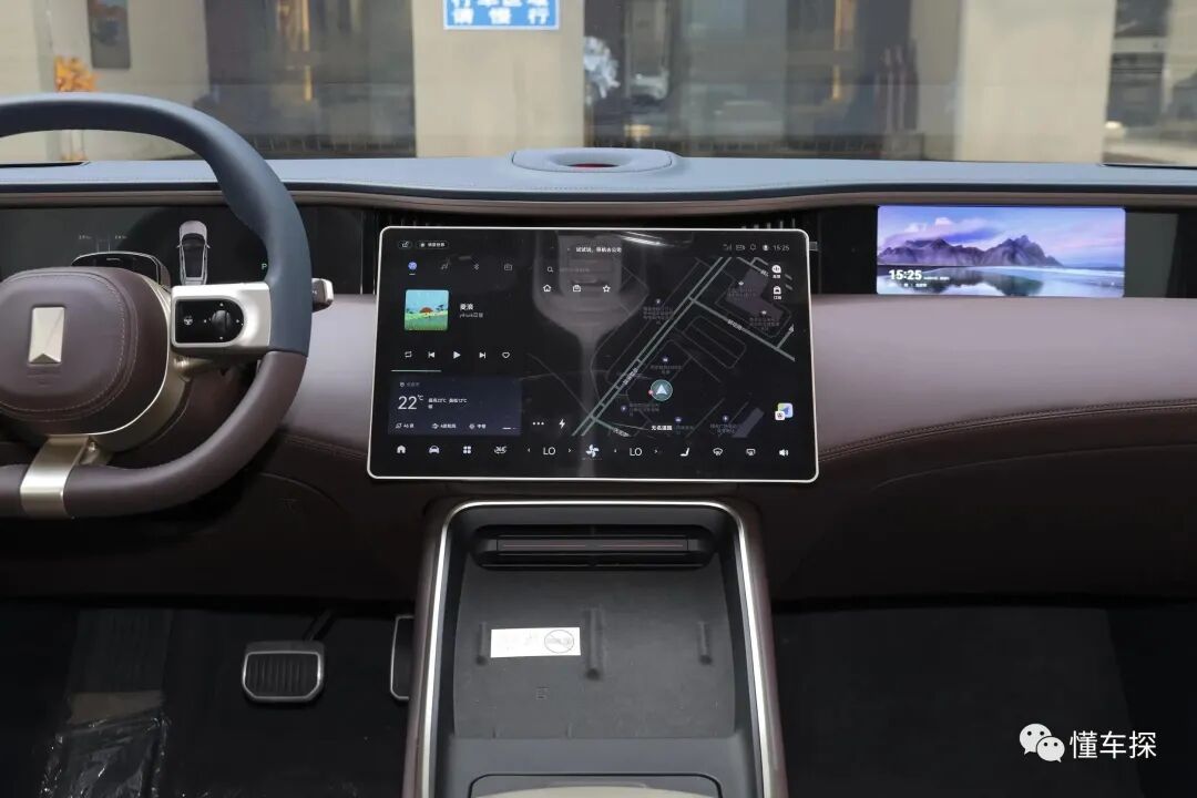 11的中控台区域搭载了三幅式平底方向盘、10.25英寸液晶仪表、15.6英寸悬浮式中控屏、10.25英寸副驾驶娱乐屏(三块屏幕可互联操控共享信息)。此外,车内座椅调节按键布置于门板上,并且还采用了怀挡式换挡机构、双50W无线充电面板(中控屏下方)。