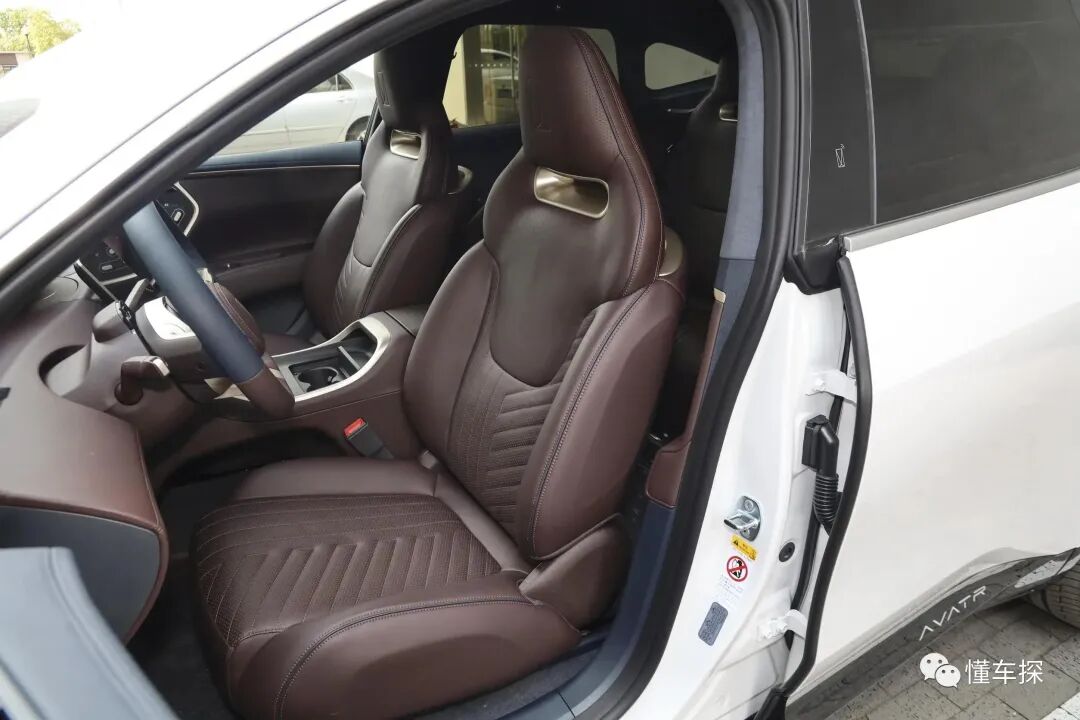 座椅部分,2023款阿维塔 11提供5座和4座版车型,其中5座版车型采用仿皮材质座椅、4座版车型采用Nappa真皮材质座椅。