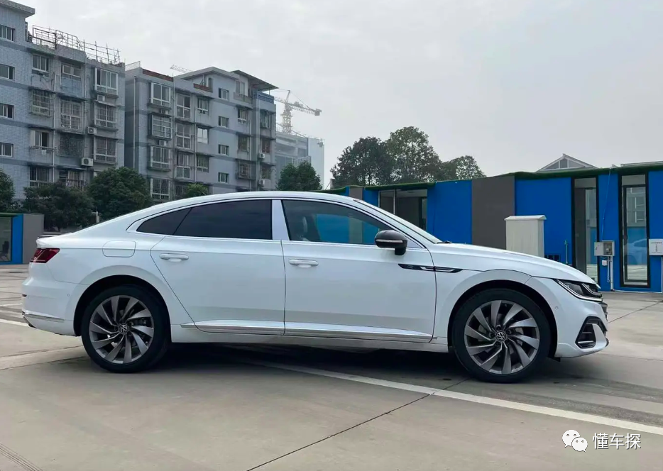 大众CC最佳的观赏位置其实在侧面,舒展、流畅的腰线使其看起来更有活力,还有当下很流行的溜背式造型。