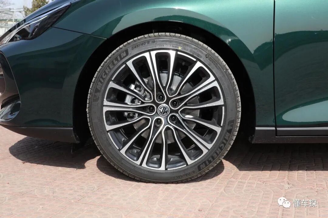 这辆猎美奢享版MG7使用的轮辋是多辐条样式,搭配米其林品牌E PRIMACY系列轮胎,规格为245/40