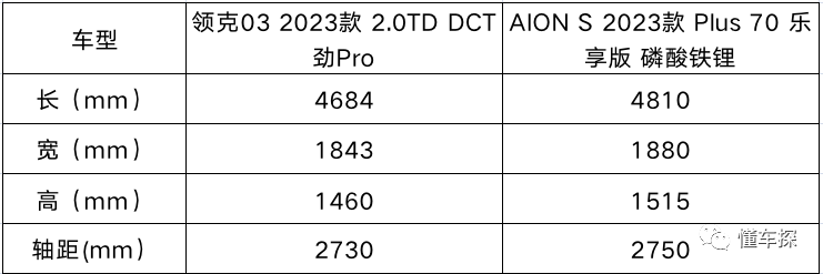 相比之下,还是AION S的车身尺寸更有优势,轴距比领克03多出20mm,车长多出126mm。