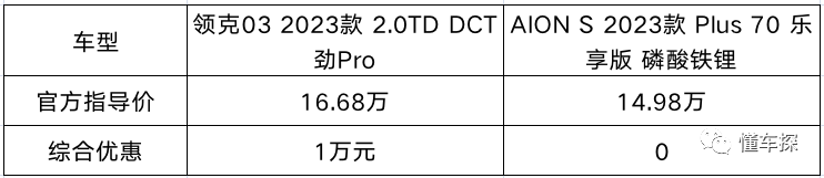 首先跟大家介绍下此次对比的车型,它们分别是领克03 2023款 2.0TD DCT劲Pro(下文简称领克03)和AION S 2023款 Plus