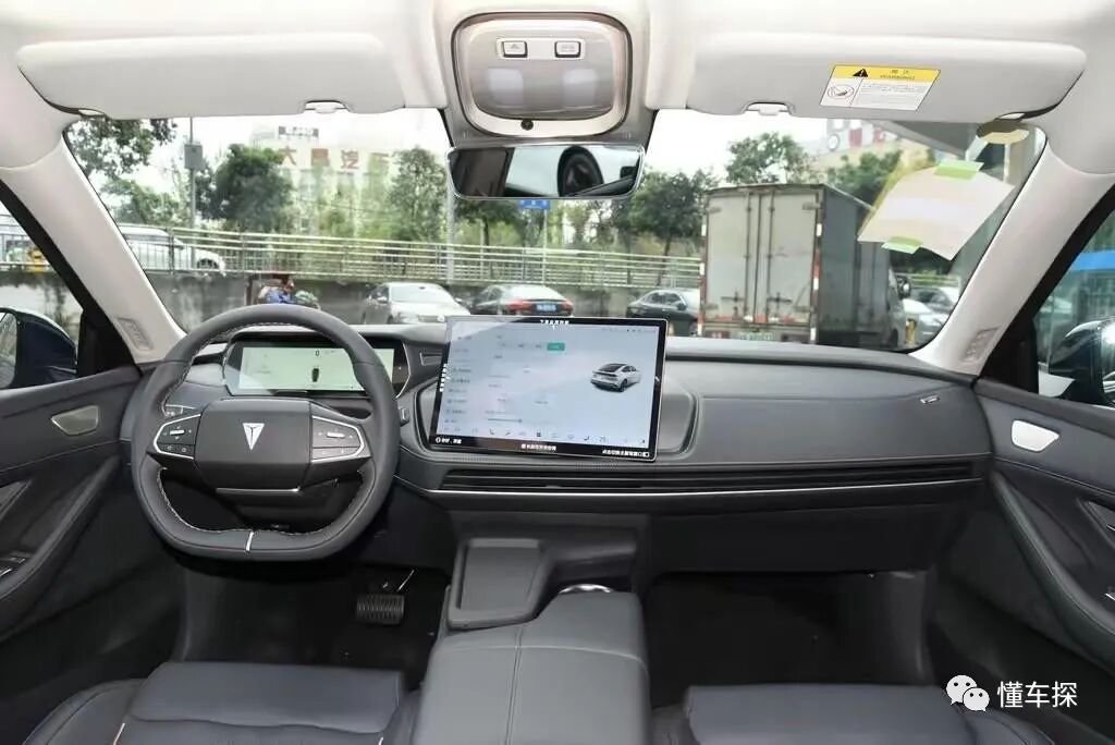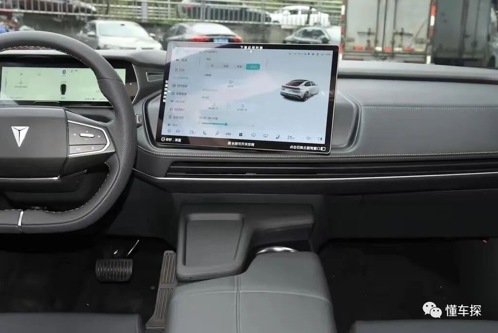 通过实拍图来看,对称式的中控台布局附身,取消繁琐的物理功能按键,看起来十分简约大气,并且大量软质材料包覆中控台,座舱质感同样值得称赞。