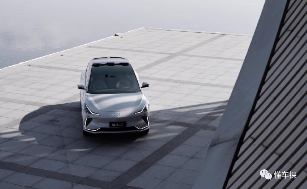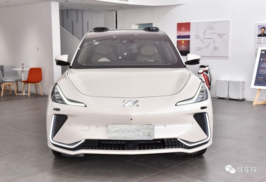 车头的离地间隙比较小,而且整个造型和中大型轿车的造型有些相似,车头的线条都比较圆润,连LED灯带的拐角都进行了圆润化处理,和激进且犀利的智己L7风格截然不同。