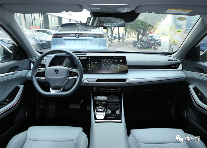 中控台上也用到了连屏设计,用户可以通过触控和语音操作实现多媒体控制、导航及空调设置等功能。