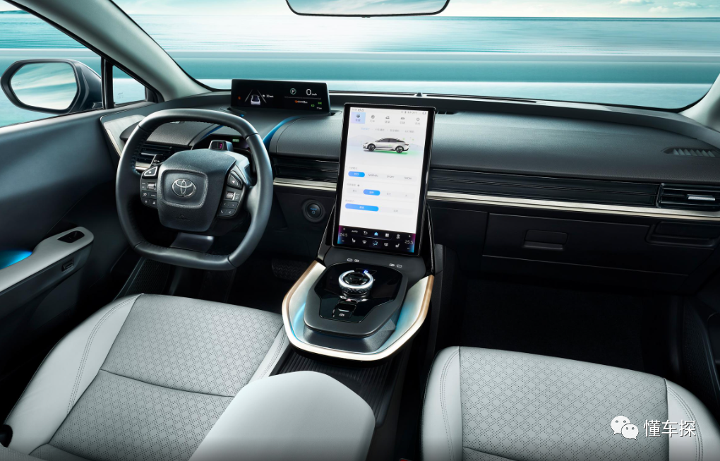 其次便是内饰的智能化表现,在这方面不同于以往丰田旗下的燃油车,这台丰田bZ3在车内采用了一块大尺寸的竖置多媒体控制屏幕,而数字仪表盘的尺寸较小,并且还集成在了中控台的前方,方便用户实时掌握车机信息。
