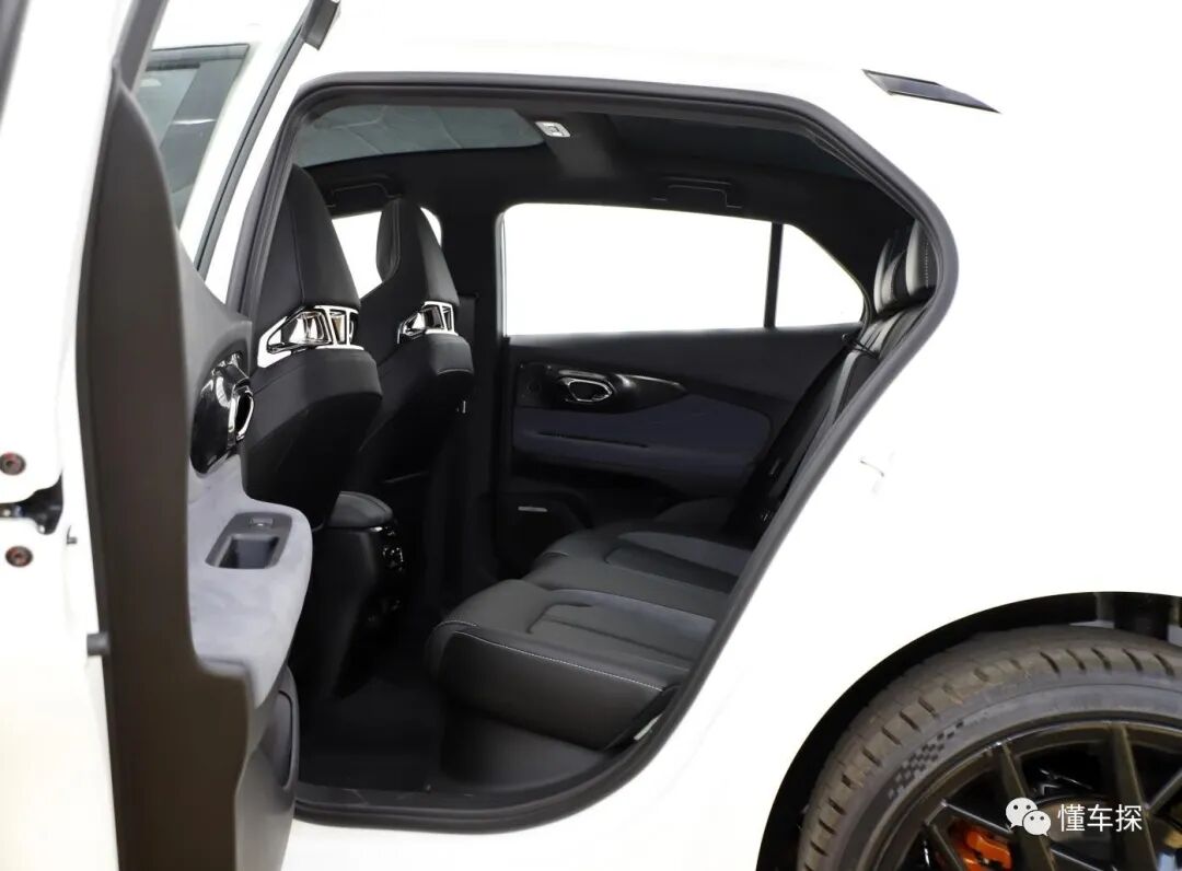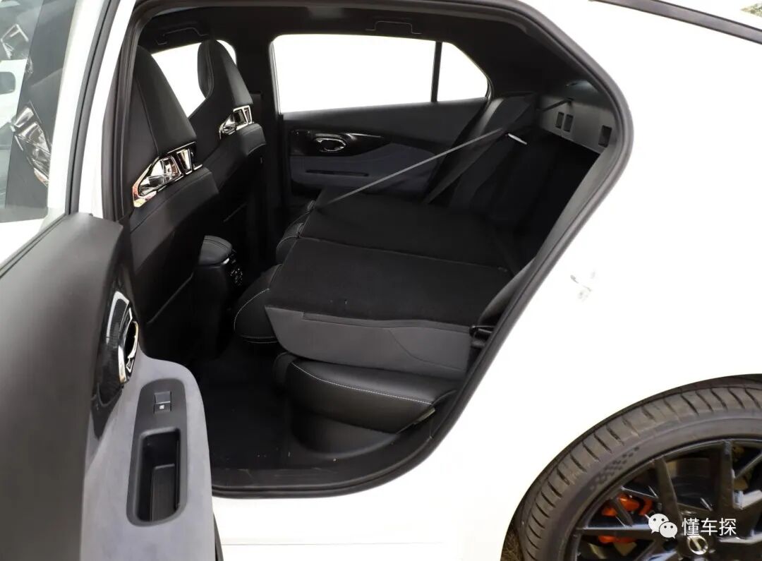 我的身高是1.75米,当把前排座椅调整为我的标准驾驶坐姿后坐进后排,这时后排的腿部空间还有两拳左右,而头部空间只有两指左右,腿部空间比较充裕,但头部空间较为局促。