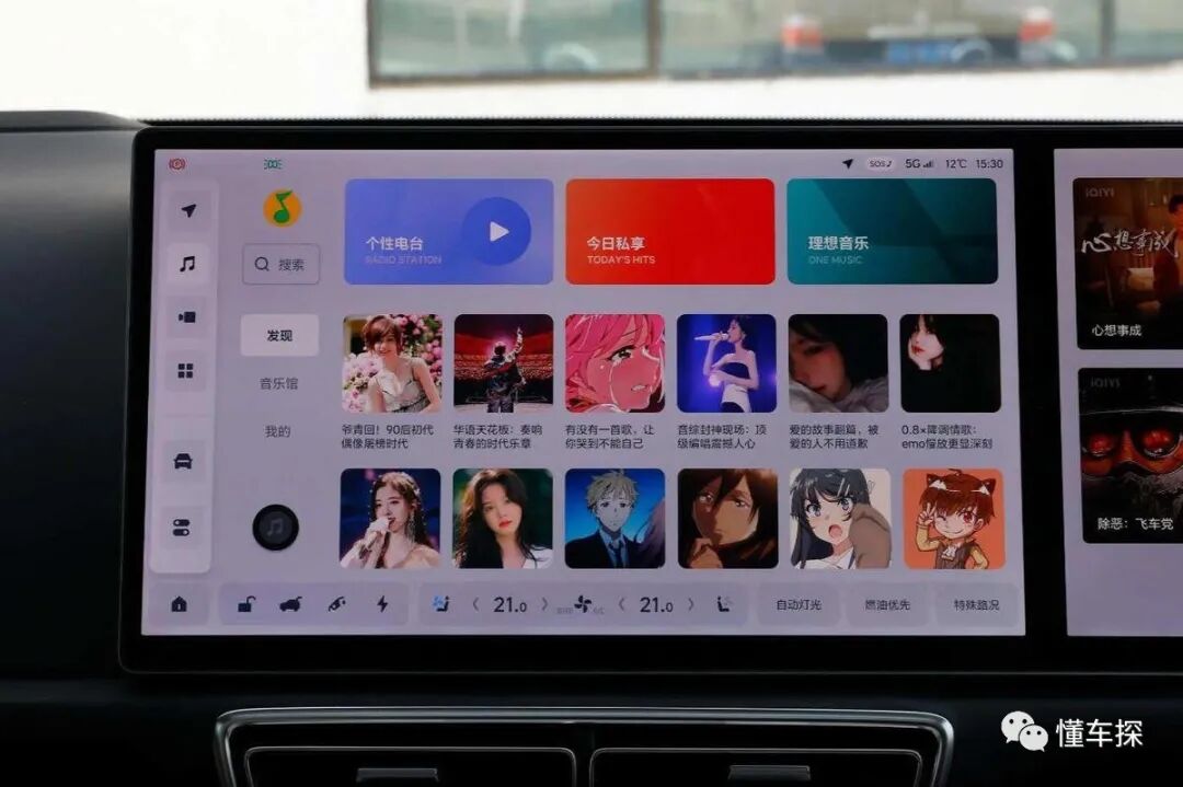 两块15.7英寸的联屏内部搭载了两颗8155芯片,更强的算力表现让系统整体运行速度有了进一步的提升,LCE的屏幕材质使得显示效果也非常出色,分辨率达到了3K,系统界面清晰易上手,同时内置的应用程序也较为丰富,除了日常常用的GPS和多媒体娱乐功能外,车内还加入了车联网和5G网络,让用户可根据自己的需求下载安装相应的应用,副驾位置的娱乐屏还可以通过蓝牙耳机单独连接,为乘客提供更佳的视听体验。