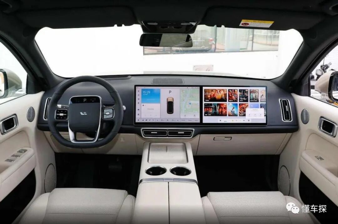 中控台中央及副驾前方采用了大尺寸的双联屏布局,传统的仪表区则换为了抬头显示和方向盘上的交互屏,使车内充满了现代科技感。
