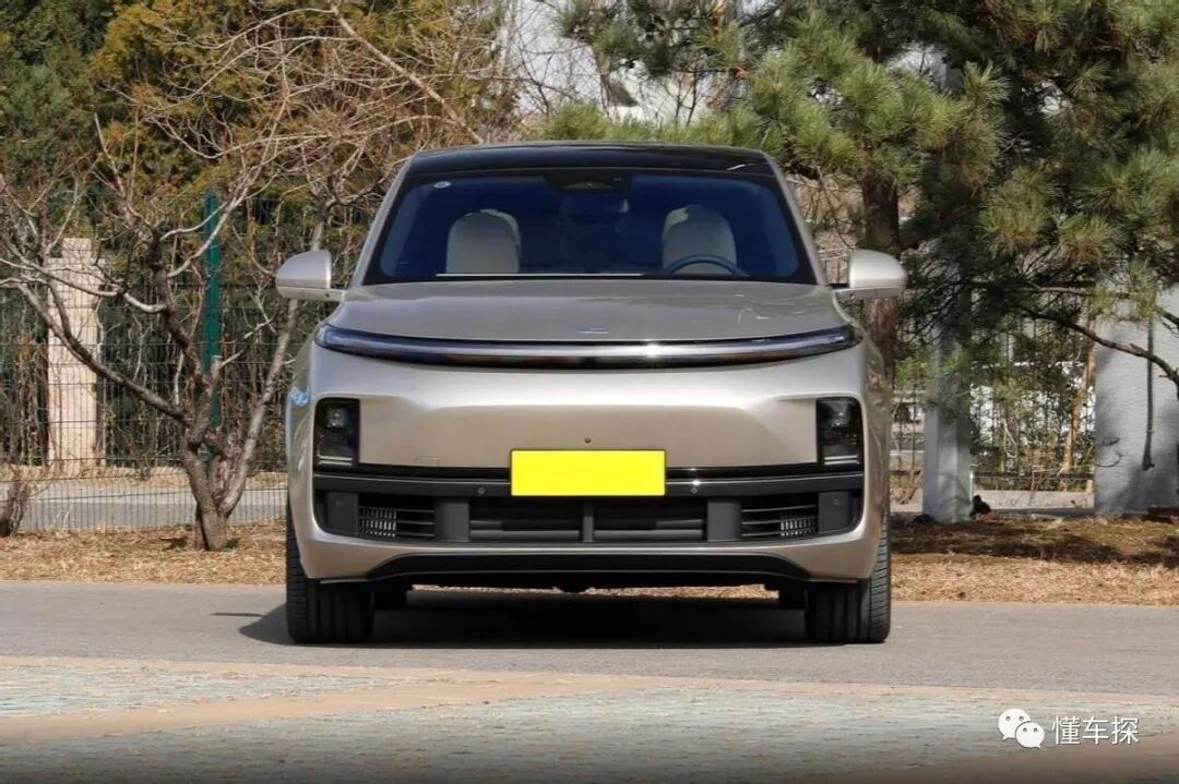 外观设计上,相比之前理想ONE过于“平庸”的造型,L7、L8和L9三款车型均采用了家族套娃式设计,封闭式的前脸带有一根较为清晰的折痕型面,格栅上方配有标志性的星环光带,整体造型前卫而独特,大灯组则采用了分体式结构,并与车头U型的黑色组件相融合,前唇上方的进气口内部为多横条的格栅造型,让前脸的视觉感更为敦实厚重。