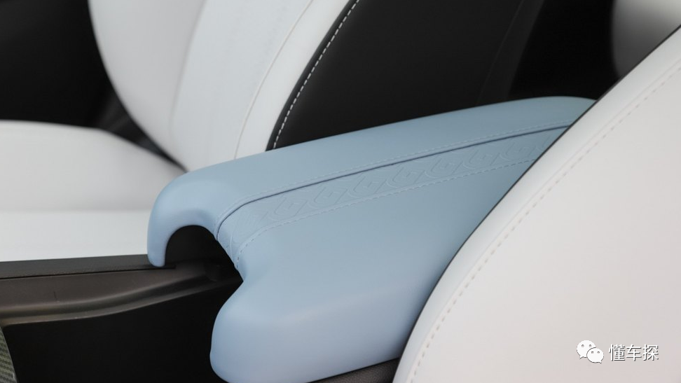 车门饰板被大面积灰色翻毛皮包裹,门拉手处配有碳纤维纹路饰板点缀,整体触感非常扎实,丝毫不显廉价。