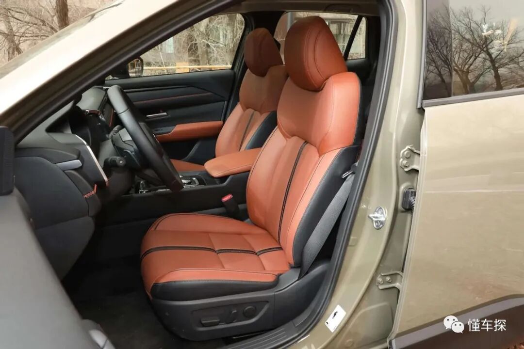 质感营造方面,马自达CX-50的表现也不错,车内使用了不少皮质材质,红色配色也增强了车内的精致感。