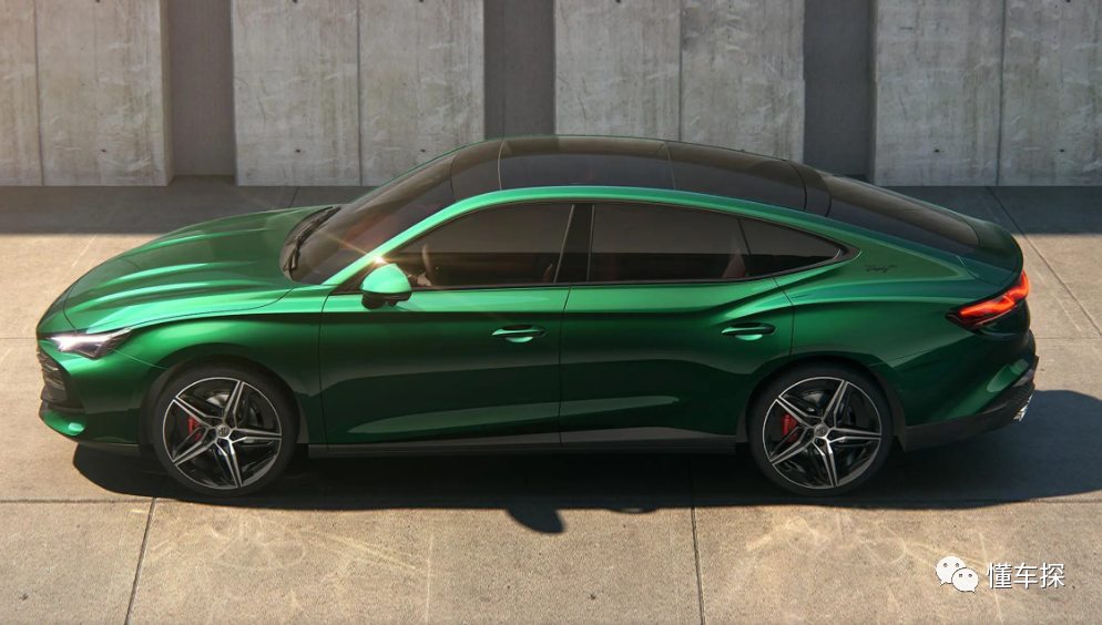 来到侧身,MG7低趴的车身姿态得到了充足的展现,大溜背式的设计加上掀背式尾门,最大程度上加强了新车的运动质感,同时无边框车门和运动轮毂的存在,让其更加符合当下年强消费者的审美标准,不过由于无边框车门的存在,所以该车在内饰的静谧性上或许会有一定的不足,并且大溜背式的曲线,也会压缩后排乘客的头部空间。