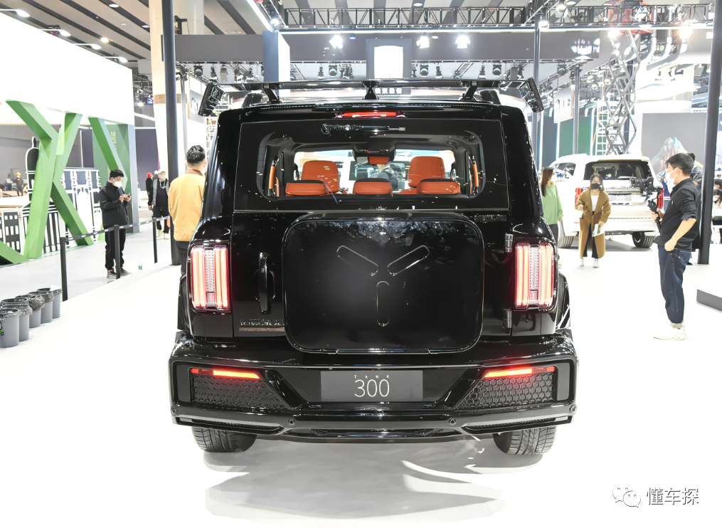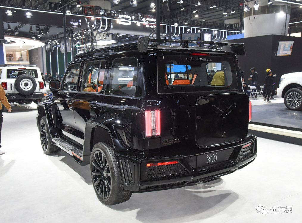 尾部方面,坦克300赛博骑士造型设计比较显眼,顶部带有碳纤维材质的扰流板,两侧配备有竖向尾灯组。