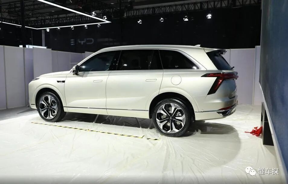 但有一说一,蓝山DHT-PHEV在描刻运动感和时尚气息方面做得还算不错,前灯组内部使用10颗LED灯珠加强辨识度,超5米的车长搭配超3米的轴距,外加隐藏式门把手和电动脚踏板,让车辆侧身看起来魁梧大气,哑光镀铬饰条映衬下,整体感觉十分厚重。