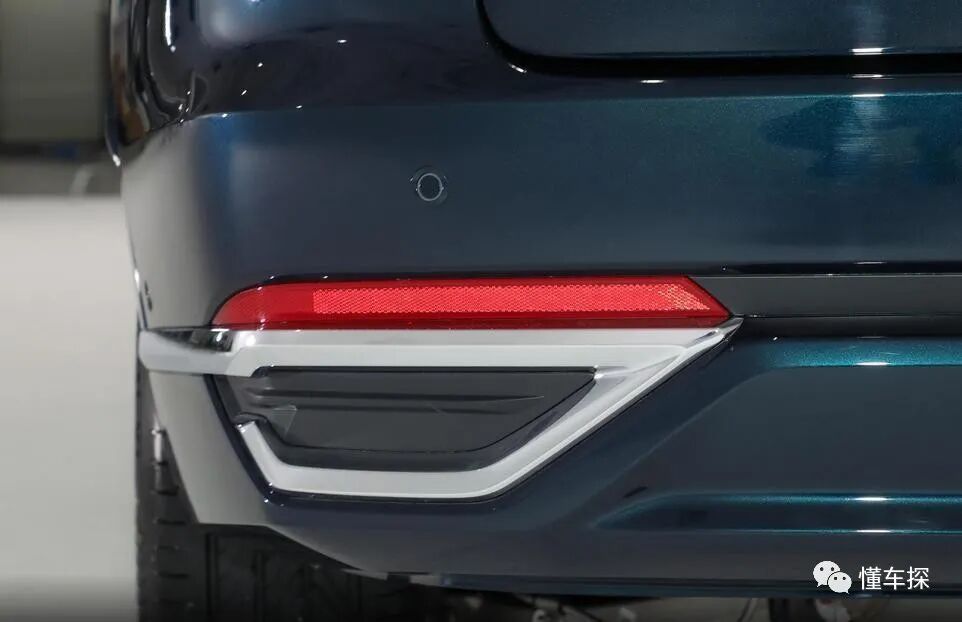 此外,新车虽性能强横,但考虑到定位和理想L8一样,都是主打家用舒适型SUV,所以后包围虽内嵌双出排气装饰,但真正的排气管隐藏在后包围底侧。