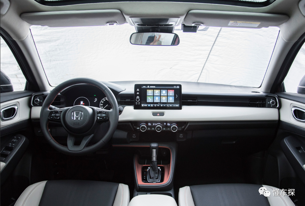 改款后的本田缤智最大好处就是极大拓宽了驾驶员视野,液晶显示屏显得较为低矮,方向盘中央位置也有所下调,不会影响驾驶员视线。