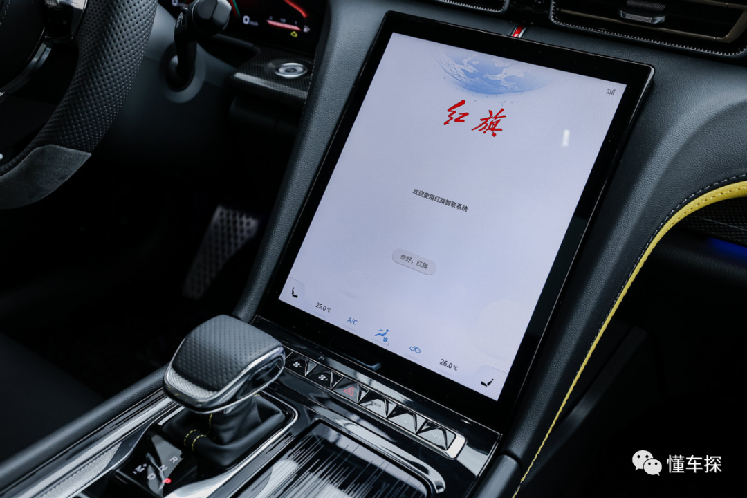 此外,红旗H6在中控台处还有着智能体系布局,它用到了12.3英寸液晶仪表、12.6英寸中控高清屏、10.98英寸W-HUD,其中的W-HUD抬头显示可以在驾驶者视线正前方显示行车信息、道路指向、道路限速等等,提升用户行车判断力。
